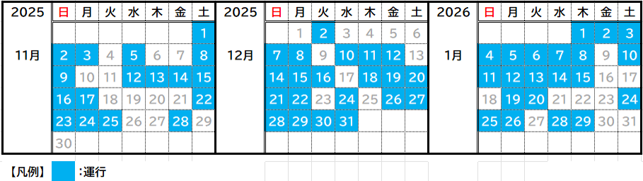 ※運休日は予告なく追加される場合がございます。