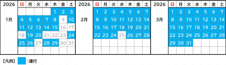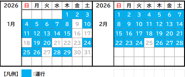 4月運行分のご予約につきましては、2月1日以降受付開始予定です。